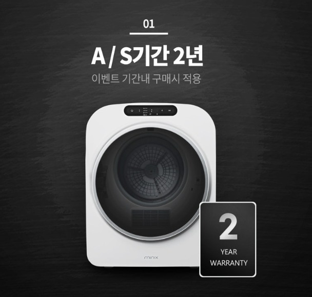 미닉스 미니건조기는 as 2년이며, 전국 29개 지점에서 수리를 받을수있어서 편리합니다.